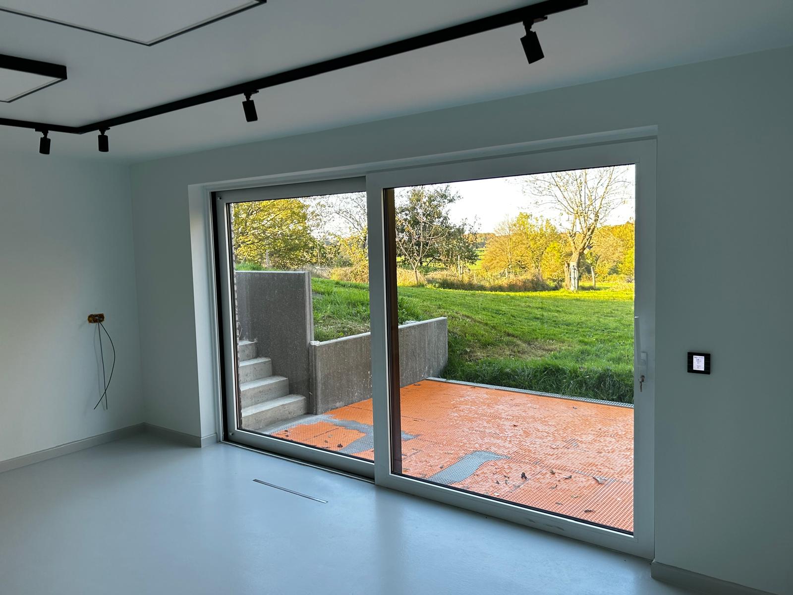 APRÈSPiece avec baies coulissantes donnant sur terrasse en construction