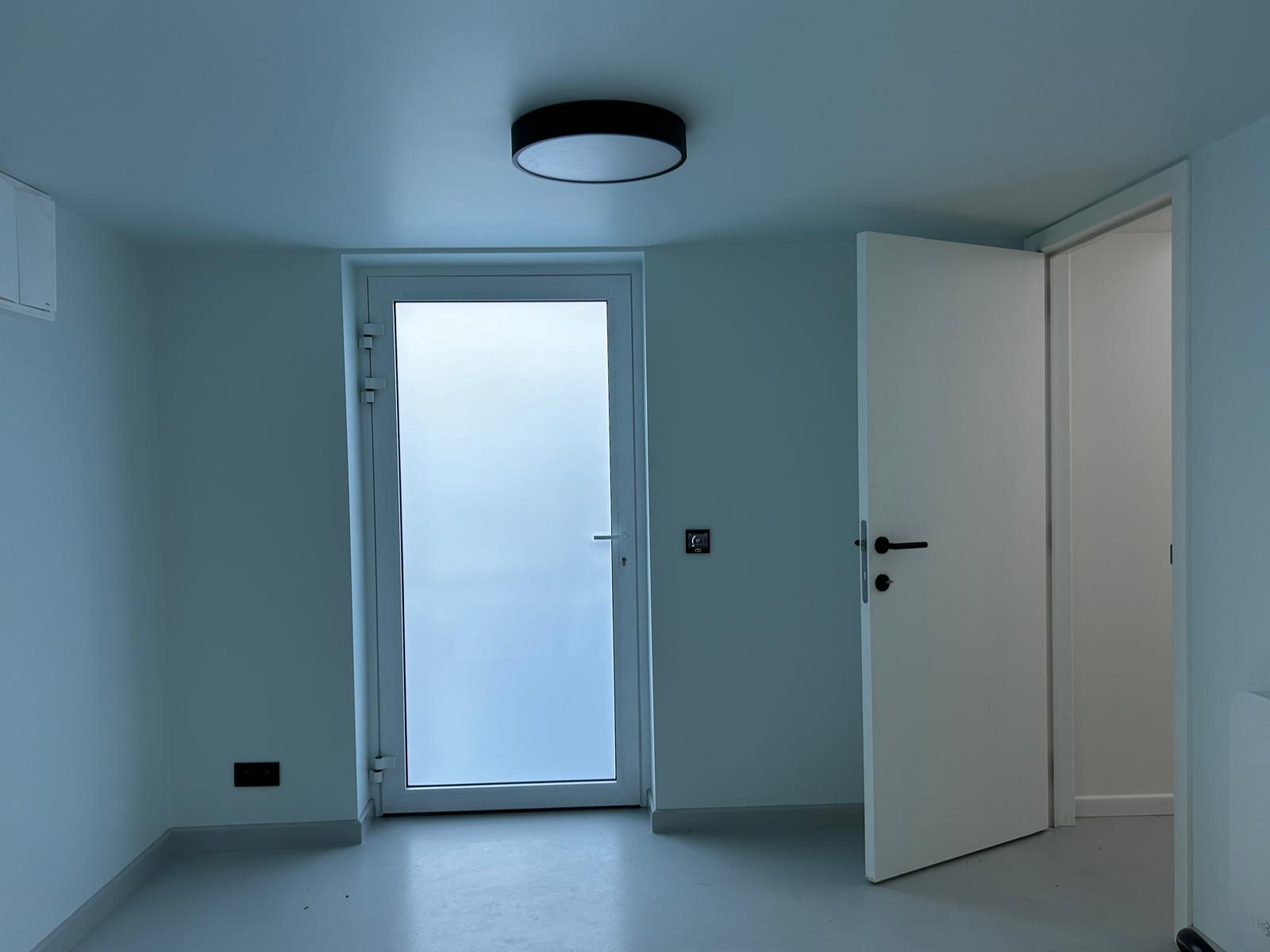 APRÈSCouloir avec porte d'entree vitree et plafonnier rond installe